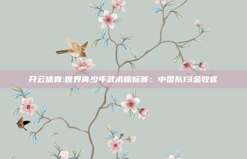 原标题:世界青少年武术锦标赛:中国队13金收官 责任编辑:曾少林本文仅代表作者观点,不代表本站立场。