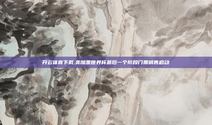 原标题:美加墨世界杯最后一个阶段门票销售启动 责任编辑:曾少林本文仅代表作者观点,不代表本站立场。